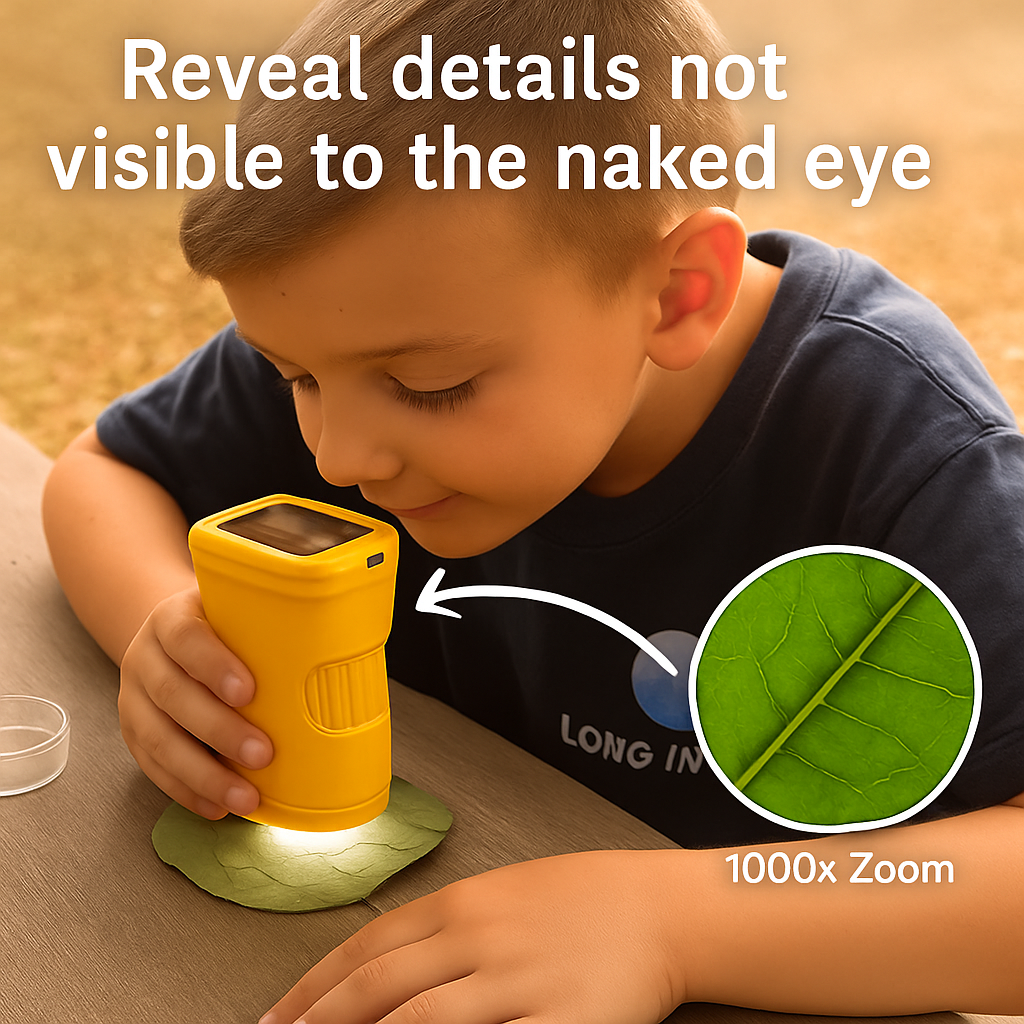 “Twist the big focus dial, click the LED, and boom—veins on a leaf pop into view. No apps, no setup, just instant ‘Mom, look at THIS!’ moments.”