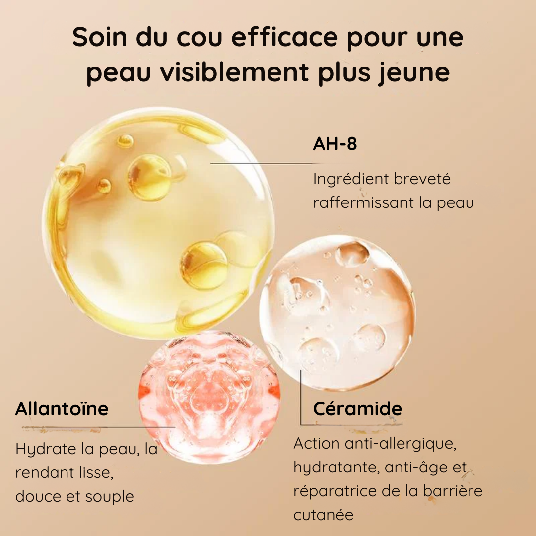 des utilisatrices trouvent leur cou visiblement plus ferme et moins relâché après 4 semaines d’utilisation.