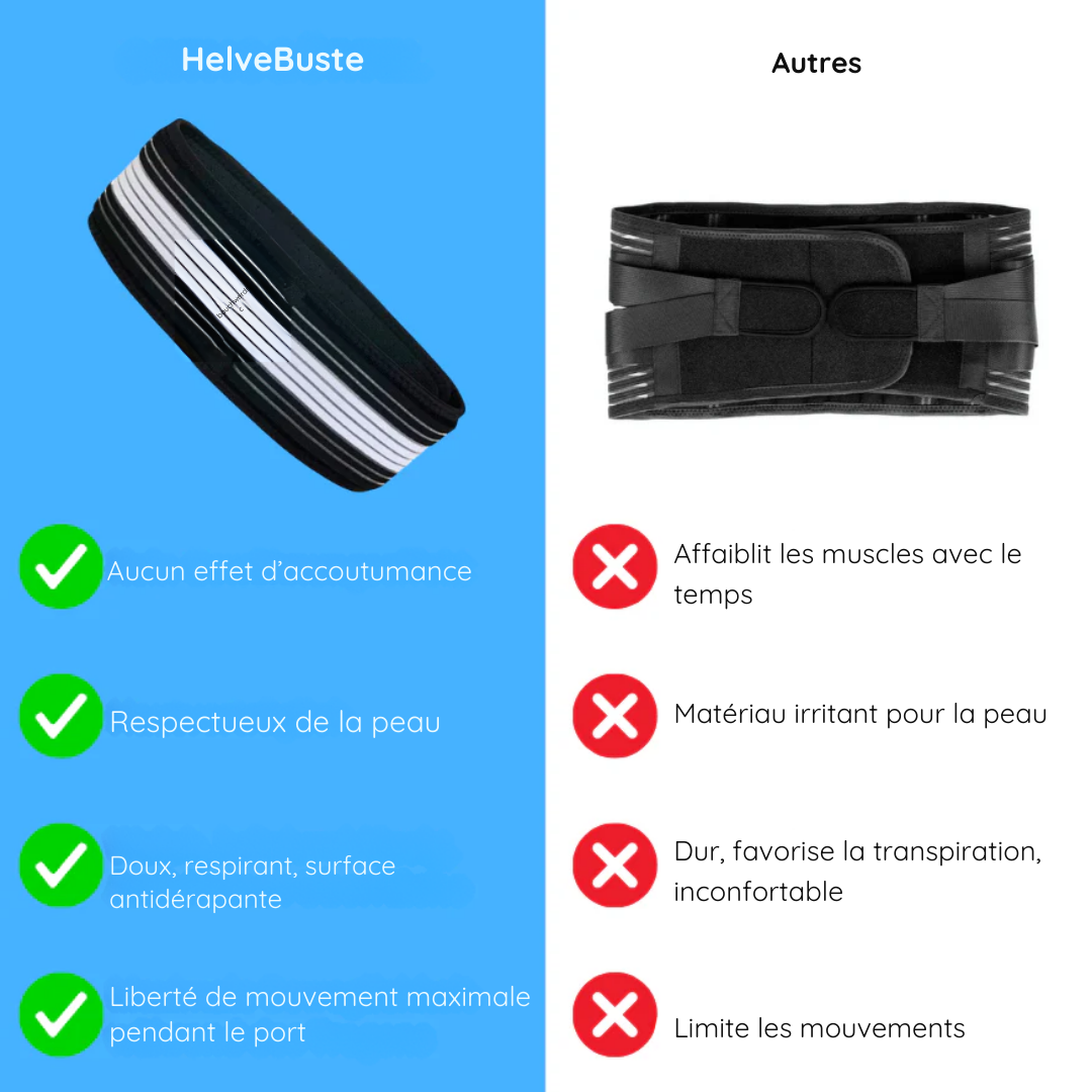 Idéal pour les personnes souffrant de douleurs lombaires, sciatiques ou pelviennes, HelveBuste™ soulage naturellement sans recourir à des médicaments. Confortable, discret et efficace, il vous accompagne dans votre quotidien pour une posture saine et un dos soulagé.