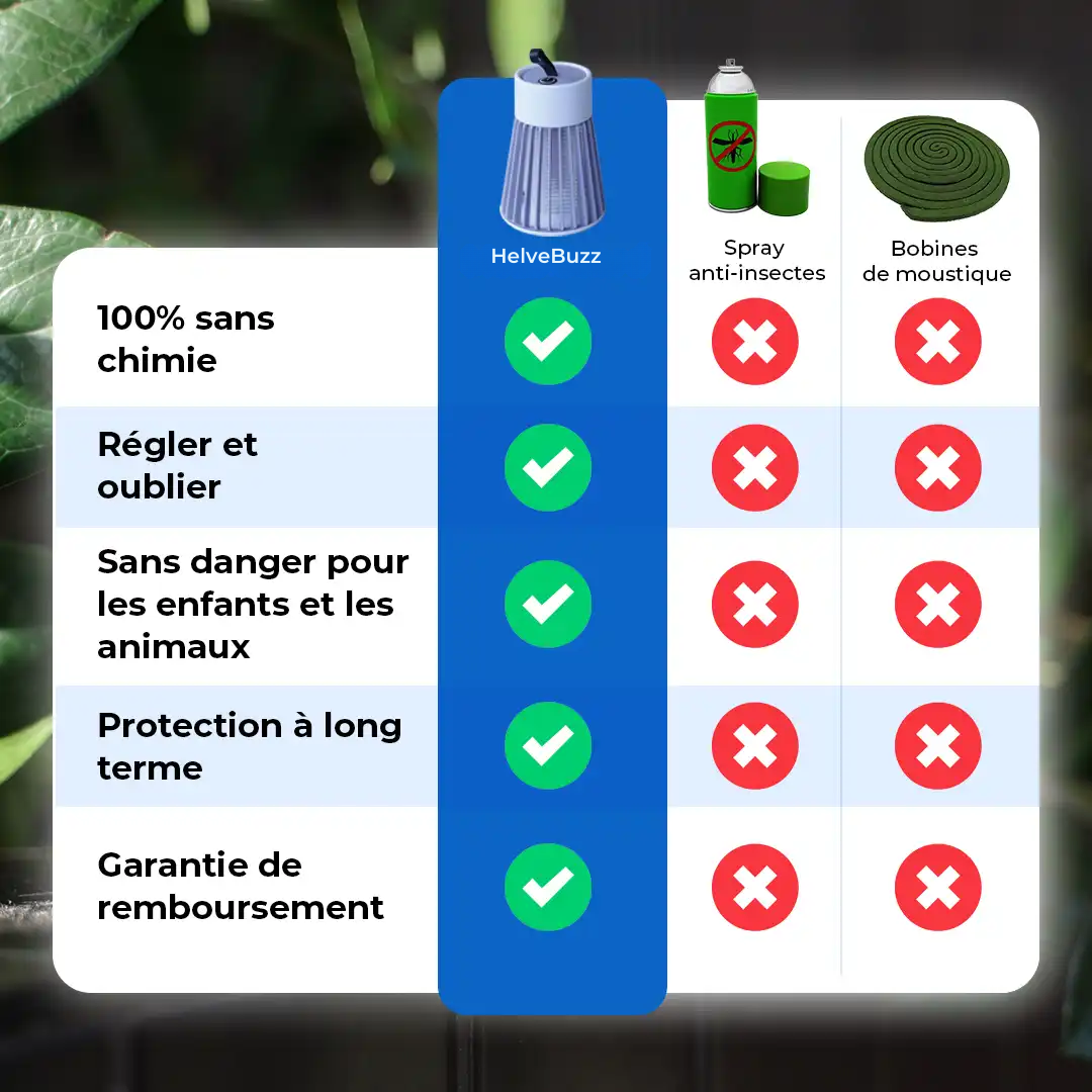 des utilisateurs affirment que HelveBuzz™ réduit significativement la présence de moustiques dès la première utilisation.
