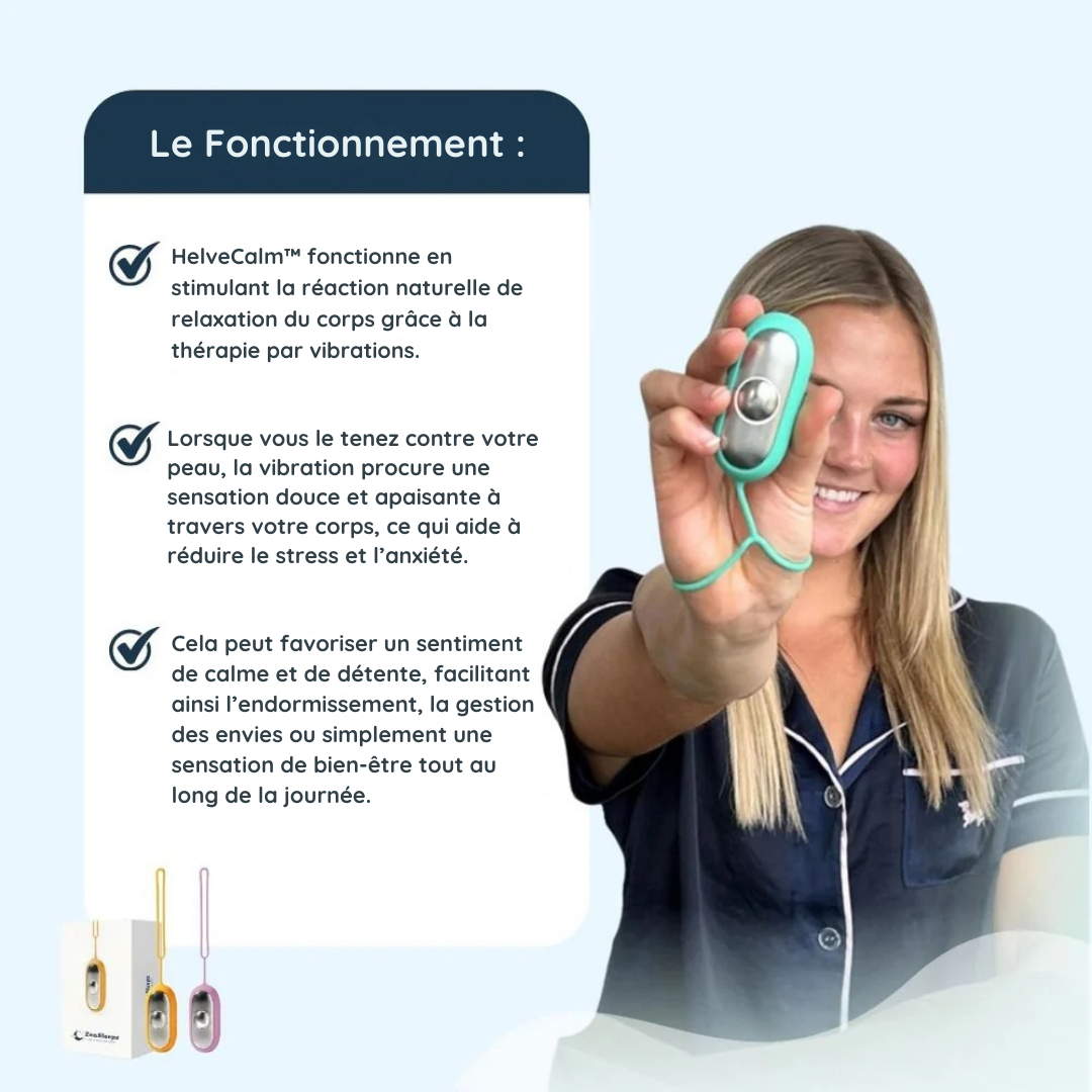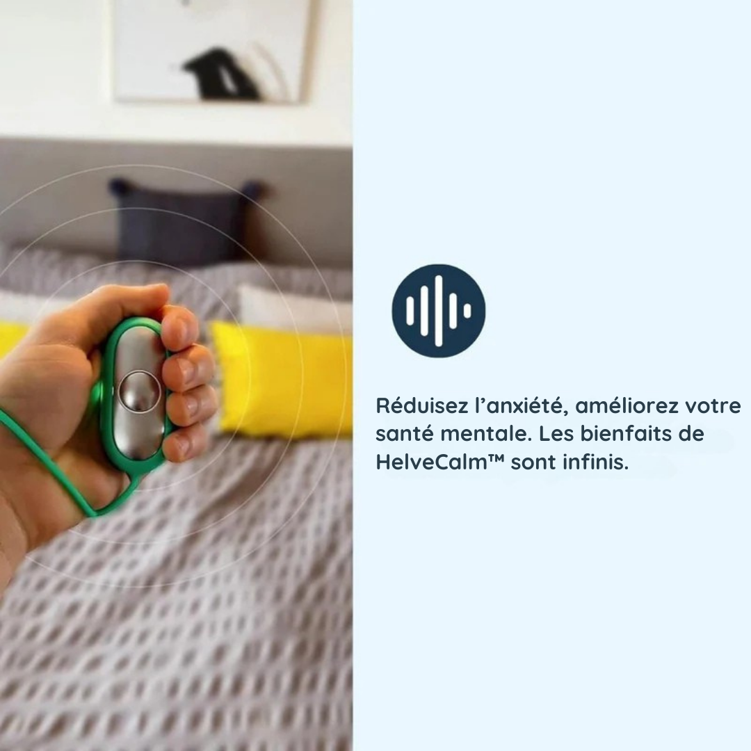 Découvrez HelveCalm™, l’allié idéal pour retrouver calme et sérénité. Grâce à sa technologie de vibration thérapeutique, ce dispositif stimule naturellement la relaxation du corps, réduisant le stress, l’anxiété et favorisant un sommeil réparateur.
