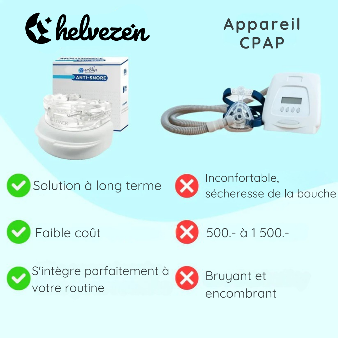 Oui ! Bien qu’il soit conçu pour réduire les ronflements, HelveGuard™ peut également soulager certains symptômes d’une apnée du sommeil légère en maintenant l’ouverture des voies respiratoires. Cependant, pour une apnée plus sévère, il est recommandé de consulter un professionnel de santé.