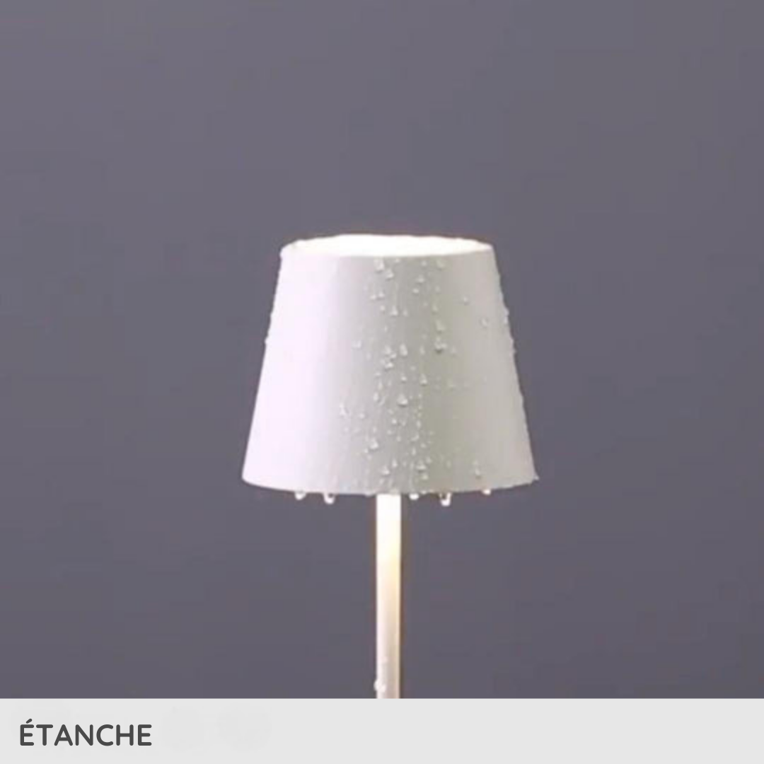 Oui, grâce à son indice de protection IP54, la lampe est résistante à la poussière et aux éclaboussures. Elle convient parfaitement pour une utilisation en terrasse ou sur un balcon.
