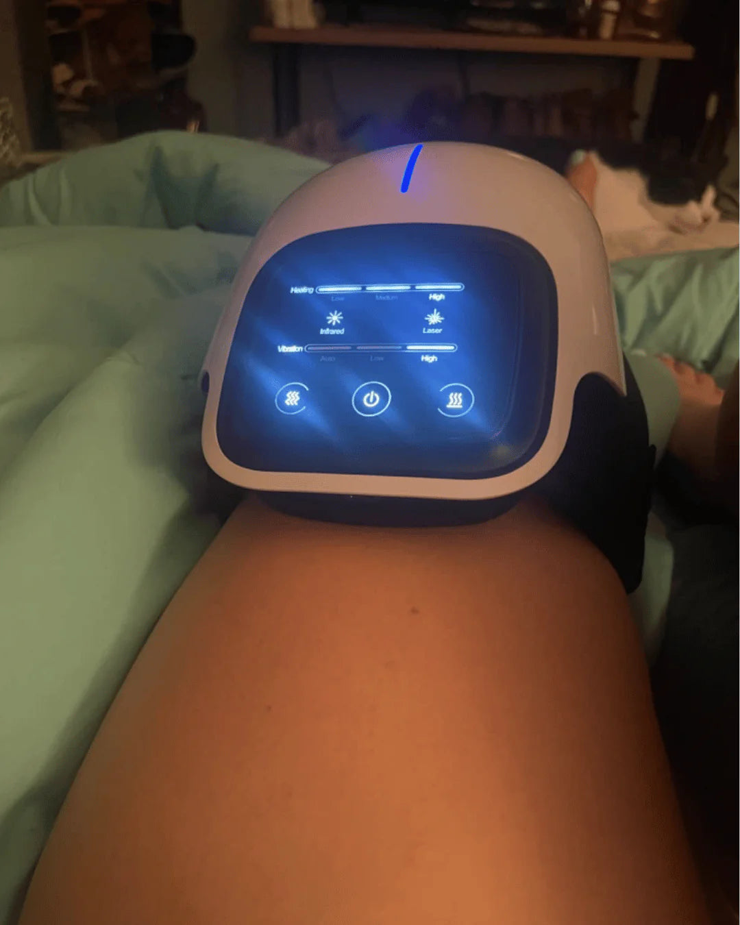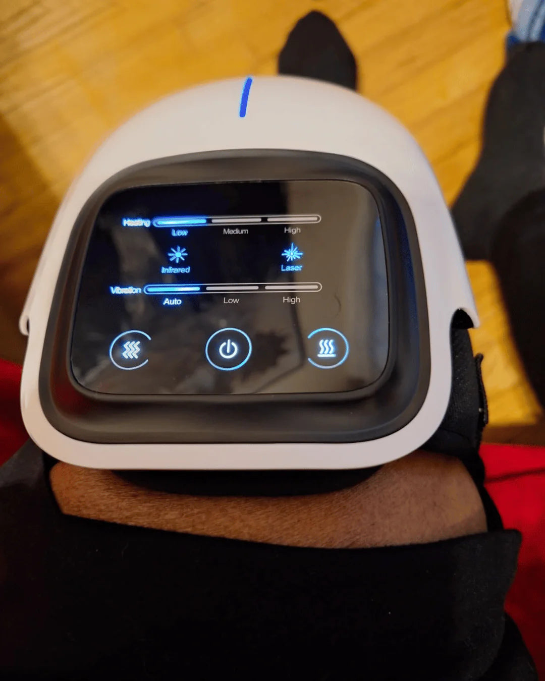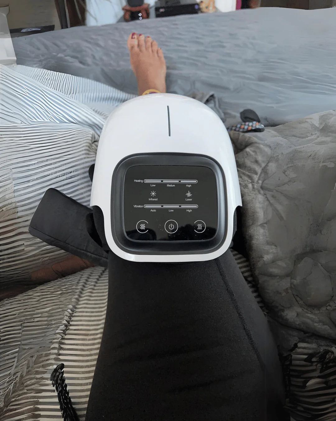 Dites adieu aux genoux enflés et douloureux, aux problèmes de ménisque ou de tendons, ainsi qu’à l’arthrose. Son massage par vibrations douces, combiné à la chaleur thérapeutique et à la thérapie par lumière infrarouge / LLLT (Low-Level Laser Therapy), est spécialement conçu pour soulager efficacement la douleur et l’inconfort.