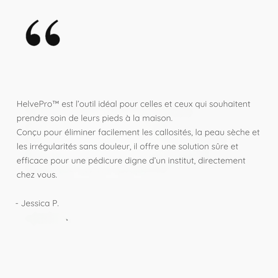 Idéal pour tous ceux qui veulent retrouver des pieds doux sans sortir de chez eux, HelvePro™ remplace les méthodes classiques comme les râpes manuelles ou les soins en institut. Offrez-vous un résultat professionnel sans douleur, sans effort, et sans rendez-vous.