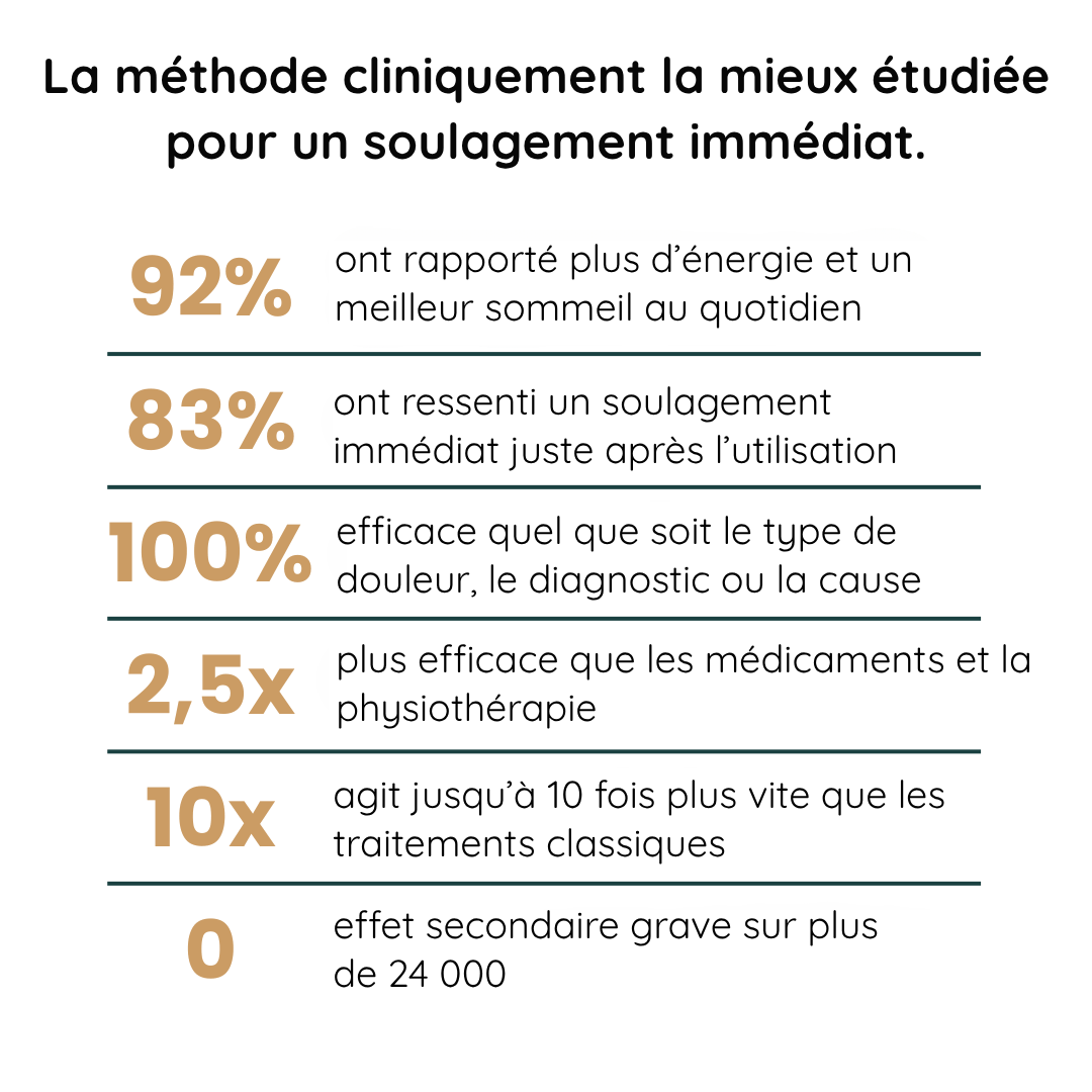 des utilisateurs ressentent une réduction significative de la douleur dès les premières utilisations.