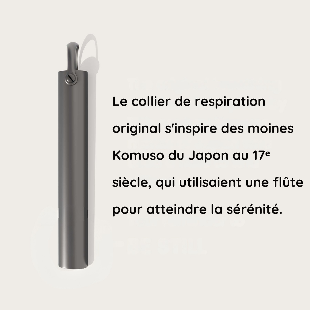 Découvrez HelveRelax™, le collier de respiration inspiré des moines Komuso du Japon et validé scientifiquement par l’Université Stanford. Sa conception ralentit votre expiration à plus de 8 secondes, apaisant votre système nerveux et réduisant efficacement l'anxiété.
