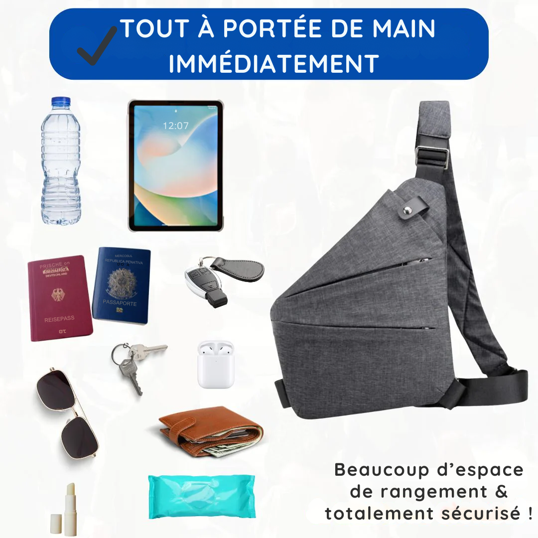 Avec HelveSecu™, chaque objet trouve sa place. Grâce à ses multiples compartiments intelligemment pensés, vous avez toujours vos essentiels — passeport, clés, portefeuille, écouteurs, bouteille ou tablette — à portée de main, en toute sécurité. Que ce soit pour vos voyages, trajets quotidiens ou balades, tout est rangé, protégé et accessible instantanément.A