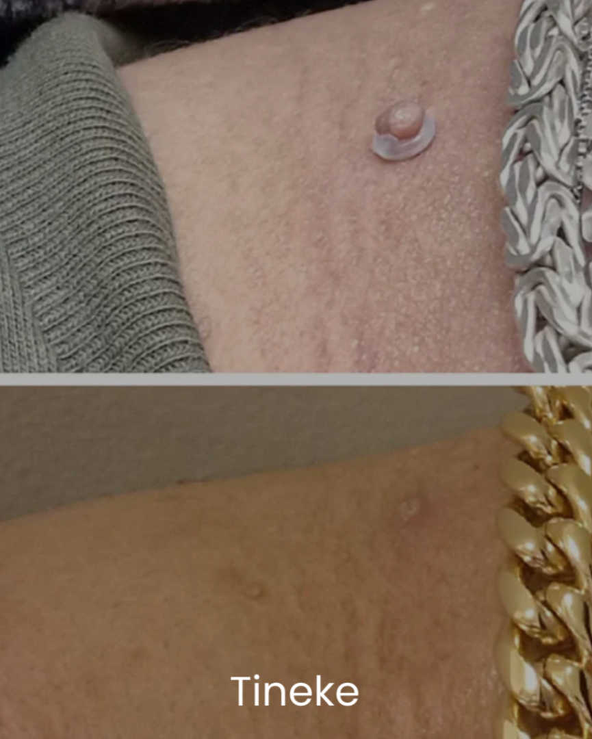 Quelques jours après l'application, l'acrochordon se dessèche et tombe de lui-même, laissant place à une peau propre, lisse et sans trace. Plus besoin de consulter un dermatologue : avec HelveTag™, vous retrouvez une peau nette et uniforme, sans douleur et en toute sécurité depuis chez vous.