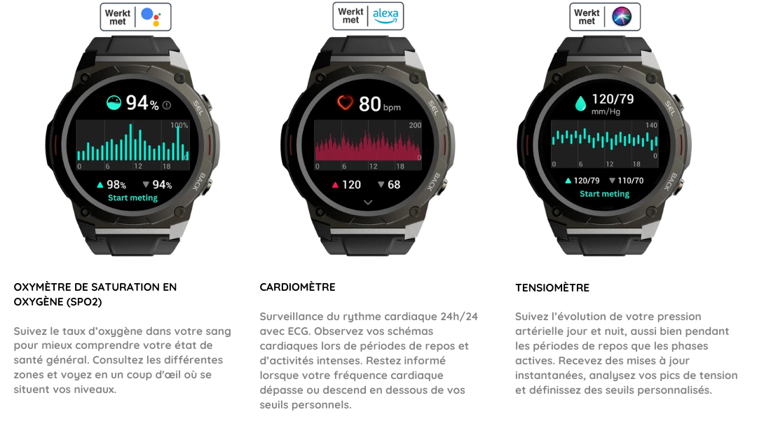 ✅ Surveillez votre santé avec un suivi avancé de la fréquence cardiaque, de la pression artérielle et du sommeil.