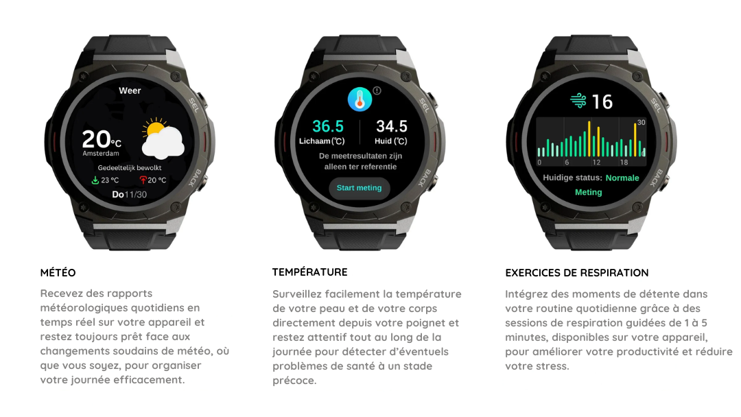 HelveWatch™ est conçue pour s’adapter à tous vos besoins. Que vous soyez sportif, professionnel, aventurier ou simplement soucieux de votre bien-être, elle vous accompagne partout. Son design robuste et ses fonctionnalités avancées en font l’accessoire idéal pour :