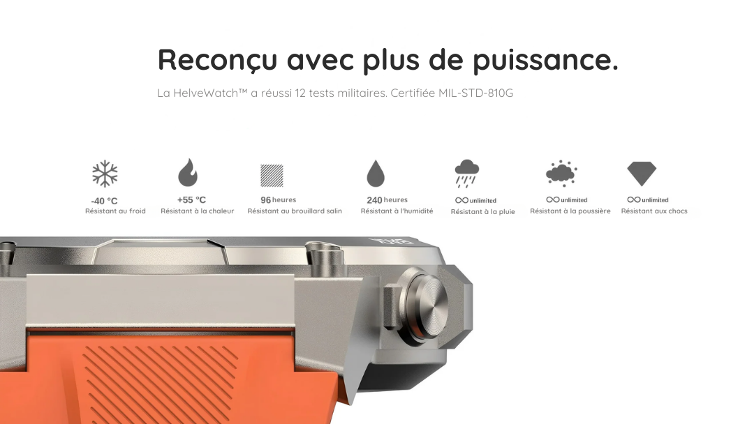 Découvrez HelveWatch™, la montre connectée ultra-résistante conçue pour vous accompagner partout, que ce soit en aventure, au travail ou au quotidien. Robustesse, précision et innovation réunies en un seul accessoire !