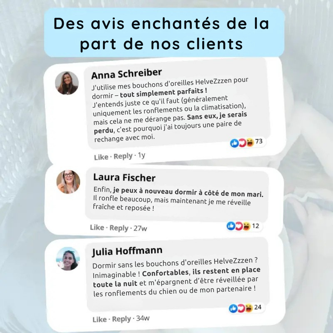 HelveZzzen™ est conçu pour réduire efficacement les bruits environnants, tels que les ronflements, les bruits de trafic ou les conversations. Bien qu’il ne bloque pas 100 % des sons, il atténue les nuisances sonores de manière significative pour un sommeil profond et réparateur.