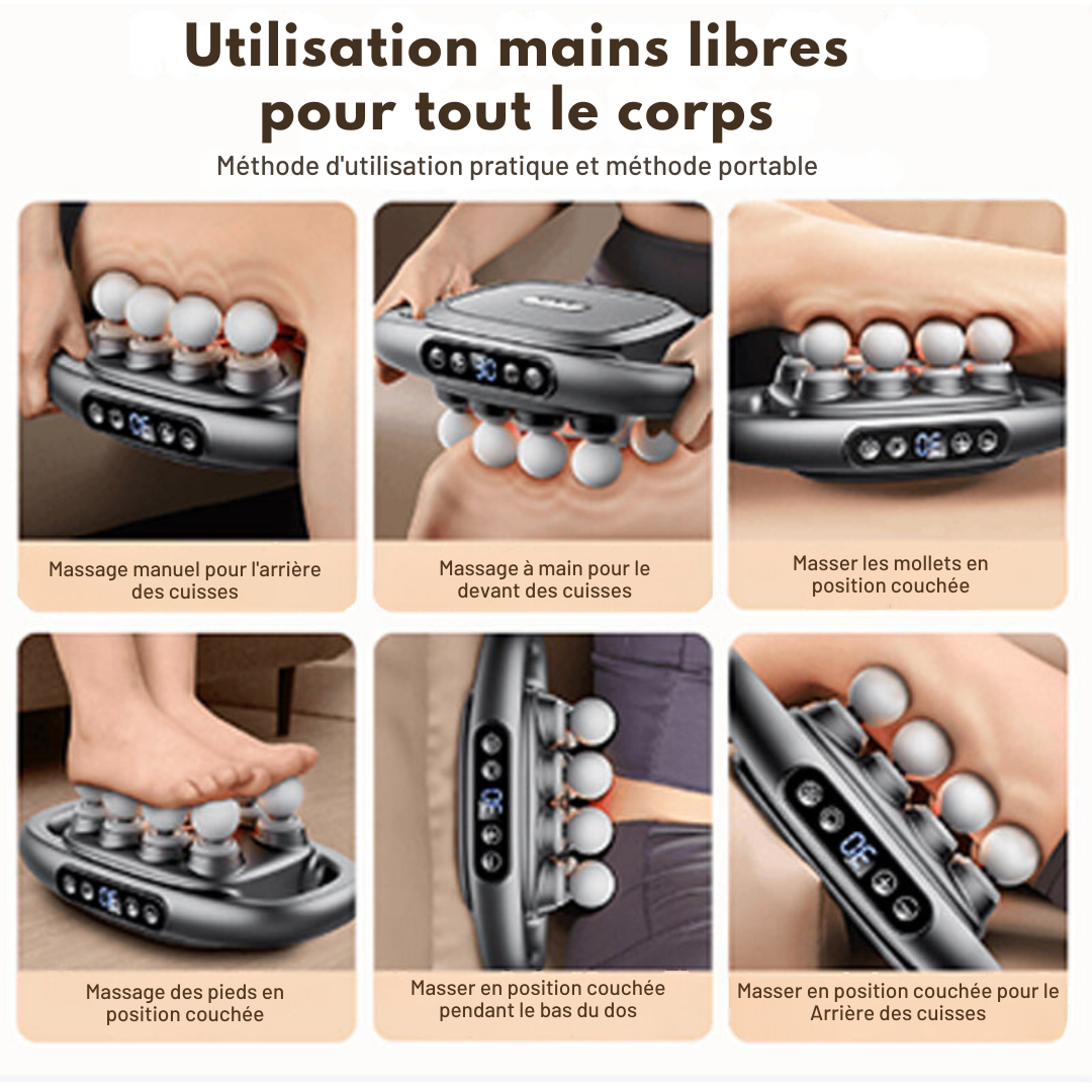 La Relaxo 8-Sphère Élite se distingue par son design ergonomique et sa polyvalence. Utilisable en mode portable ou mains libres, il est idéal pour les séances rapides ou les moments de relaxation prolongée. Conçu pour tous, il redéfinit la manière de prendre soin de soi en combinant performance et simplicité. Grâce à cet appareil, retrouvez chaque jour une énergie renouvelée et un bien-être global.