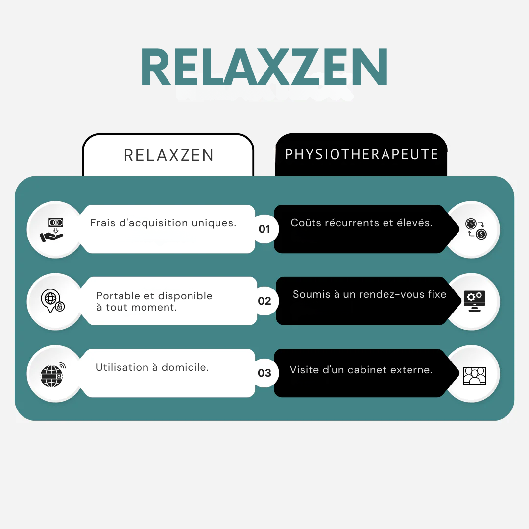 Oui, RelaxZen™ est conçu pour une utilisation sûre à domicile. Il est basé sur des technologies couramment utilisées en kinésithérapie et recommandé par des spécialistes.