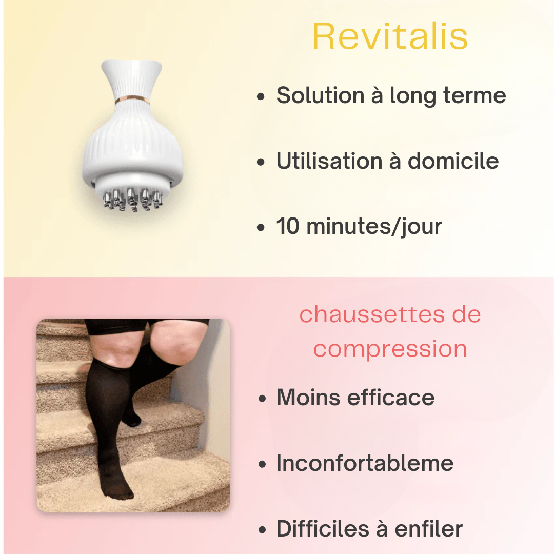 💪 Dites adieu aux jambes douloureuses et enflées ! Avec Revitalis™, soulagez naturellement la douleur et réduisez les gonflements causés par l'œdème, le lymphœdème et la neuropathie – et ce, confortablement chez vous. Conçu pour stimuler la circulation, libérer les blocages lymphatiques et apaiser les inflammations, Revitalis™ devient votre allié bien-être au quotidien.